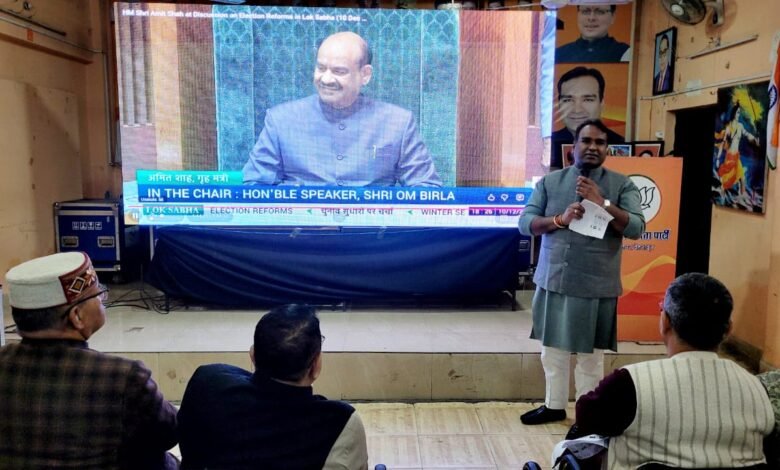 आज दिनांक 16 दिसंबर 2025 को देश के माननीय गृह मंत्री आदरणीय अमित शाह जी के द्वारा सदन में हुई चुनाव सुधार पर चर्चा का वीडियो क्लिप के माध्यम से भाजपा महानगर कार्यालय पर महानगर की अध्यक्ष सिद्धार्थ उमेश अग्रवाल जी के नेतृत्व में सैकड़ों कार्यकर्ता ने माननीय गृहमंत्री अमित शाह जी के उद्बोधन को सुना।
